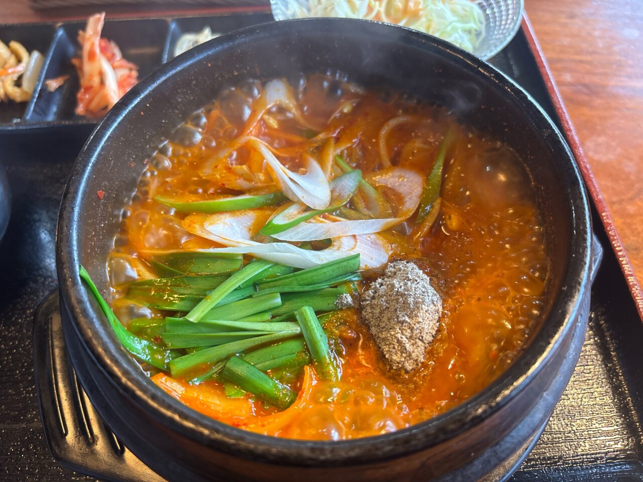 野菜がタップリ!そしてこのホルモンがプリプリで口に入れると脂の旨味が溶け出します!辛い物は好きですが得意という訳ではない筆者。それでもほどよい辛さで無理なく平らげる事ができました。食べ終わる頃には寒さが吹き飛びポカポカと。ホルモンチゲ定食は初めて頂きましたが、ホルモンとチゲの旨味が合わさって絶品でした。気になる方は行ってみてはいかがでしょうか。