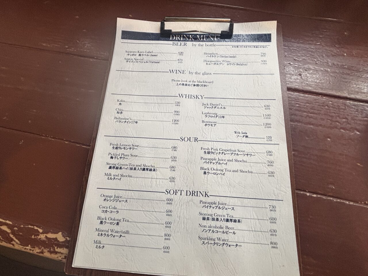 ドリンクはカウンター上の黒板に書いている星マーク以外から選べます。